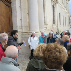 Arnaud Lemaigre nous a accueillis sur le perron de l'Hôtel Dieu entre l'immense statue représentant l'archevêque INGUIMBERT, évêque de Carpentras au XVIIe siècle , et le porche de l'Hôtel Dieu appelé aussi le palais des pauvres . Il a relaté devant plus de 40 adhérents l'histoire de l'institution avant de nous arrêter sous la voute plate de l'entrée avec un focus sur l'architecture de ce lieu qui abrite maintenant la bibliothèque Inguimbertine :" La maison des muses ".