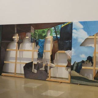 D’autre part, en miroir à Picasso, l’exposition Lignes de fuite présente des artistes de différents horizons qui sont directement concernés par des conflits au Moyen Orient et en Europe de l’Est. Ces performances font référence à la nécessité d’échapper à une situation donnée mais aussi aux possibles à construire. Quant à nous, nous sommes restés un peu perplexes !