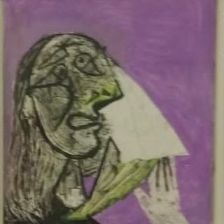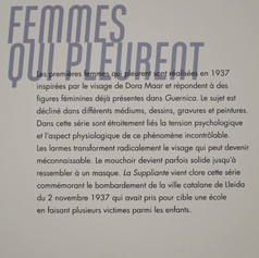 La violence et la tristesse dominent. Le choix pour Carré d’Art s’est porté sur les créations de Picasso dans les temps de troubles politiques, de la seconde guerre mondiale jusqu’au tableau Massacre en Corée de 1951. Dès 1937, avec Guernica, se dessine pour Picasso une période d’engagement politique où est perdu tout espoir de retrouver une Espagne libre. Les temps troublés se retrouvent dans la plupart des sujets – portraits, natures mortes, paysages – qu’il aborde au cours de ces années. La violence s’impose de façon magistrale dans La Suppliante de 1937 et dans de nombreux portraits de Dora Maar mais aussi dans la série de femmes qui pleurent où les larmes transforment radicalement le visage ou encore dans le Chat saisissant un oiseau peint en avril 1939. Dans ce contexte de guerre, le chat pourrait incarner la figure de l’agresseur à l’allure carnassière puisque il a été peint peu après la chute de Madrid et la proclamation de la fin de la guerre civile par Franco.