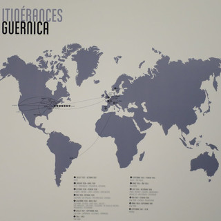 L’incontournable Guernica est évoqué par le film d’Alain Resnais de 1950 mais aussi par un ensemble inédit de dessins de l’artiste brésilien Gabriel Borba Filho. Une carte expose l’itinérance du tableau avant son installation définitive au Musée National Reina Sofia de Madrid, en 1981.