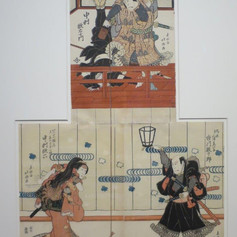 Légendes et récits : Peintures et arts graphiques sont peuplés d’êtres fantastiques ou héroïques issus de l’histoire et de la littérature. Les Surimono retracent quelques mythes et légendes de l’ancien Japon. Dans cette salle, à côté des estampes, des objets plongent notamment le visiteur dans l’univers des samouraïs