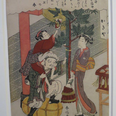 La fête du Nouvel An : De toutes les fêtes qui jalonnent l’année, celle du Nouvel An est la plus populaire au Japon. De nombreux symboles et images inspirent les poètes et les dessinateurs de Surimono, qui prennent la forme de cartes de voeux précieuses et sophistiquées. Pour le Nouvel An, on goûte aussi aux sept herbes du « bouillon magique » et on boit le o-toso, saké à base de vin de riz sucré et parfumé aux plantes médicinales