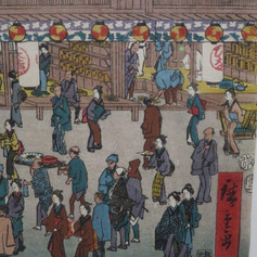 La vie quotidienne à Edo : En 1590, Edo, petit village de pêcheurs sur l’Océan Pacifique, devient le siège du shogunat où se concentre la vie politique, économique et social du pays, Edo deviendra Tokyo. Les résidences des aristocrates étaient construites à l’ouest du château du shogun, dans la Ville Haute, tandis dans la Ville Basse, située dans la plaine à l’est, un monde d’artisans, d’artistes, d’épiciers, de marchands, d’aubergistes, de geishas, d’acteurs, de saltimbanques, de prostituées forme une société bariolée, bruyante, débordante d’énergie. Des incendies chroniques se répandent dans la ville, ainsi que des tremblements de terre, des inondations et des épidémies. C’est ainsi que les habitants d’Edo (les Edokko) ont appris à jouir du moment présent.