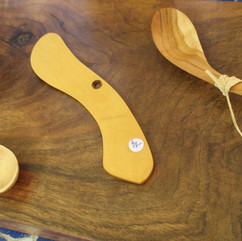 Ateliers de potière céramiste (Laura Rachez) et d'un sculpteur (Lucas Poutou) sur bois rare (buis, cade) pour de petits ustensiles de cuisine (ah la beauté de ses tartineurs de beurre !!!) qui manie aussi le fer avec dextérité pour en sortir des couteaux aux formes pures et originales....